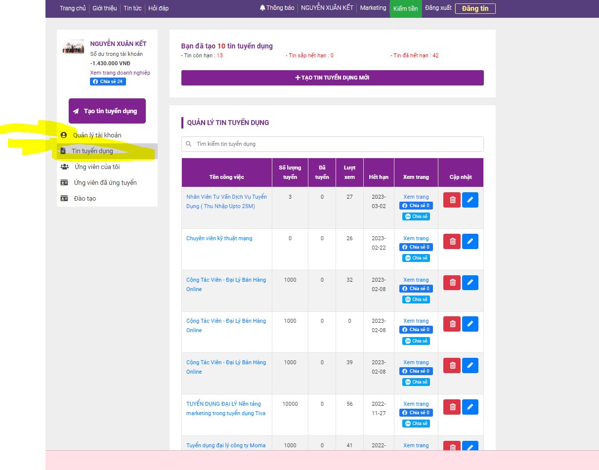 - Danh sách tin tuyển dụng