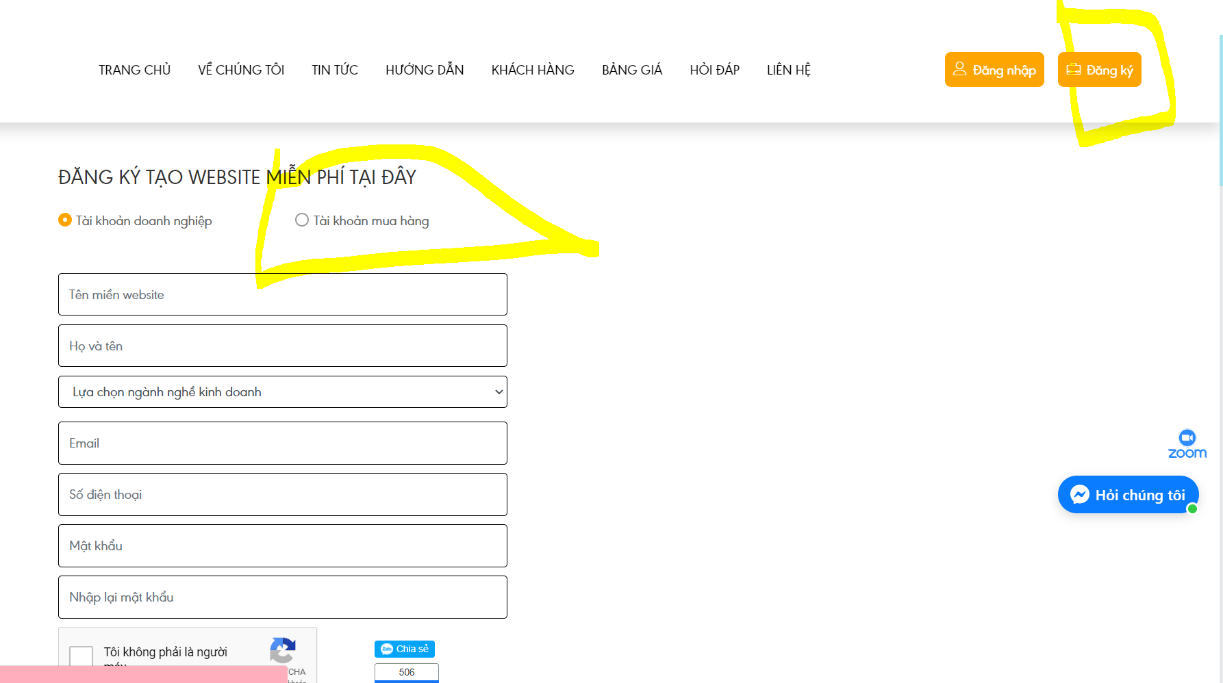 Bước 2: Nhận vào nút đăng ký